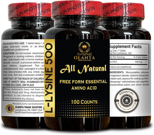 High-Quality OLANTA TRADE SOLUTION L-LYSINE 1000mg Amino Acid Supplement for Healthy Nitrogen Balance and Muscle Growth - 100 Count Bottle