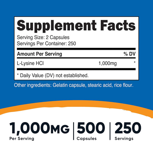 Nutricost L-Lysine 500mg Capsules - 1000mg Serving, 500 Count (2 Bottles)Vendor:NutricostRegular price $140.02 AUDRegular priceUnit price per-