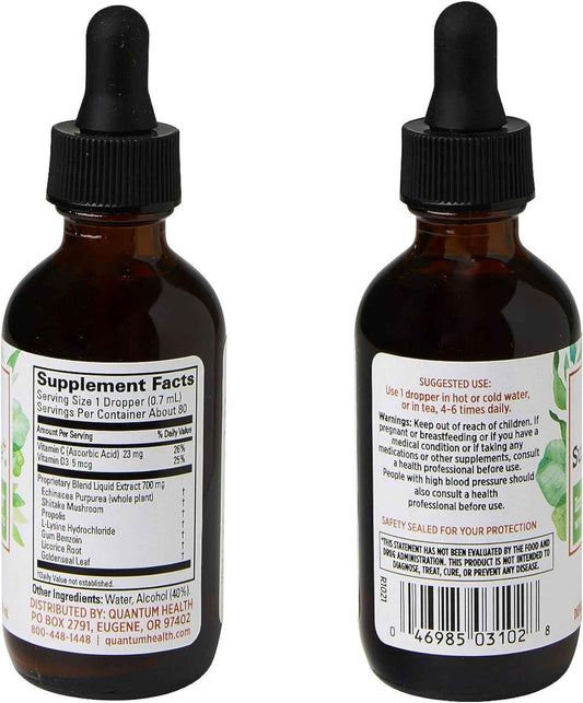 SuperLysine+ Liquid Immune Support Supplement with Lysine, Echinacea, Vitamin D3, Bee Propolis, and Shitake - Daily Wellness Blend for Fast Absorption - 2 Ounce