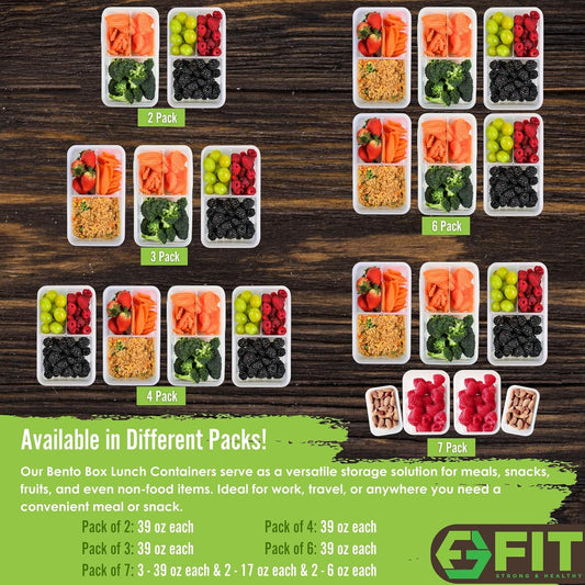3-Pack Bento Box Meal Prep Containers - 39 oz, 3 Compartment Lunch Box for Kids & Adults - Microwave, Freezer & Dishwasher Safe - Leakproof Reusable Food Storage Containers