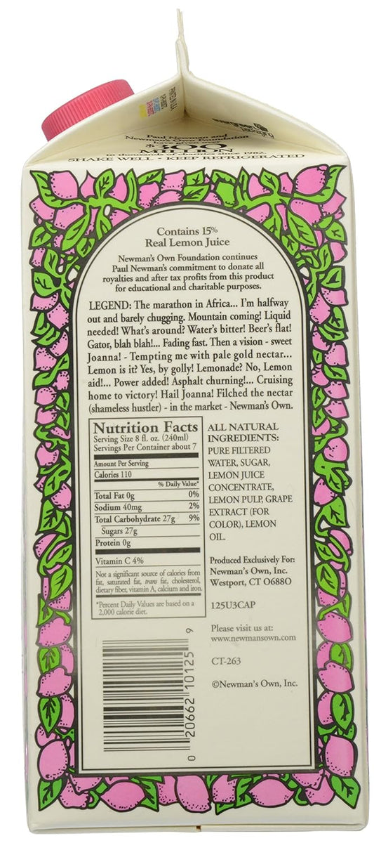 Newman's Own Virgin Pink Lemonade - 59 oz, All-Natural Refreshing Drink with Real Fruit Juice