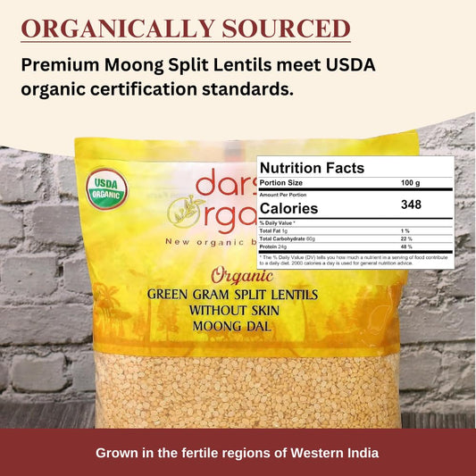 USDA Certified Organic Split Green Gram 2 lb - Husk-Free Moong Dal, Non-GMO Yellow Mung Beans, Chemical-Free & Kosher - Ideal for Indian Dishes & Healthy Recipes