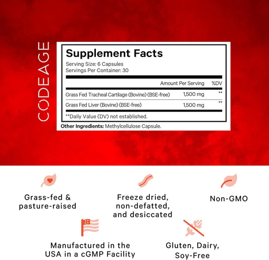 Freeze Dried Grass Fed Beef Cartilage & Liver Pills - Argentina Beef Vitamins - Non-GMO - 180 Capsules