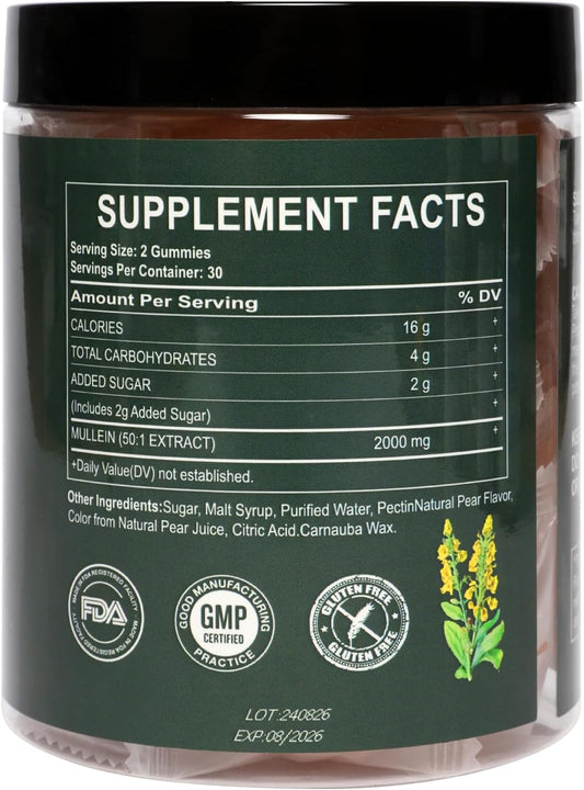 2000mg Mullein Leaf Extract Gummies for Lungs - Natural Mucus Remover & Lung Cleanse Supplement