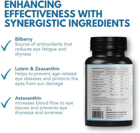 Eye Shield Supplement with Bilberry, Lutein, Zeaxanthin, Astaxanthin, Beta-Carotene - Supports Dry Eyes, Vision Health, Night Vision - 90 Capsules