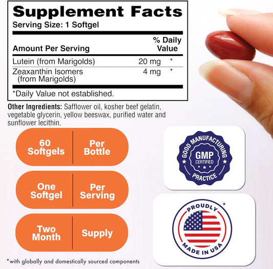 Lutein and Zeaxanthin Softgels 60ct - All-Trans Marigold Extract 5:1 Ratio - Supports Eye, Skin, Brain - Non-GMO, Soy & Gluten Free - Health Thru Nutrition