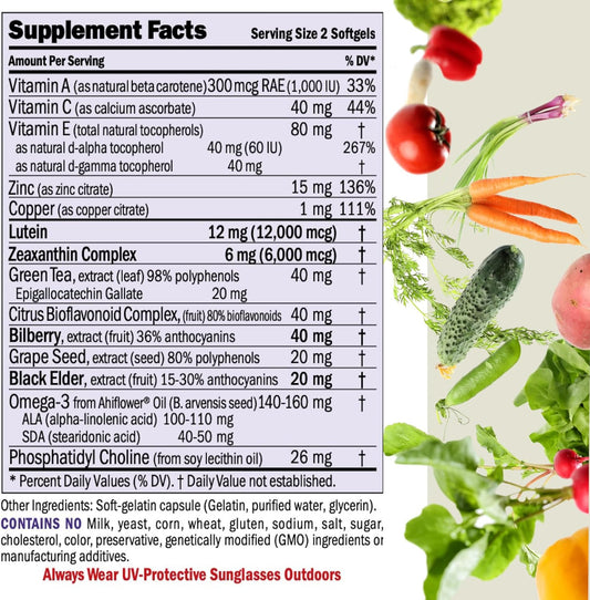 Andrew Lessman Ultimate Eye Support Softgels - 12mg Lutein, 6mg Zeaxanthin, Bilberry - Key Nutrients for Eye Health - Promotes Healthy Vision - No Additives - Easy to Swallow