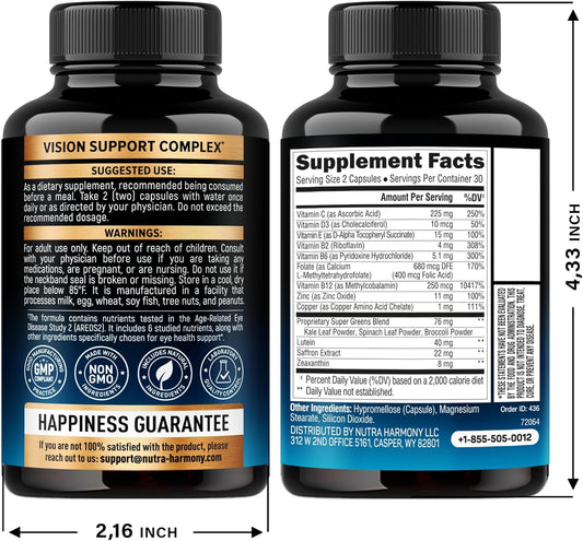 Eye Health Supplement for Seniors & Adults - Lutein 40mg & Zeaxanthin 8mg - Supports Vision & Eye Health with Saffron, Zinc, Copper, Vitamins & Super Greens - Made in USA - 60 Capsules
