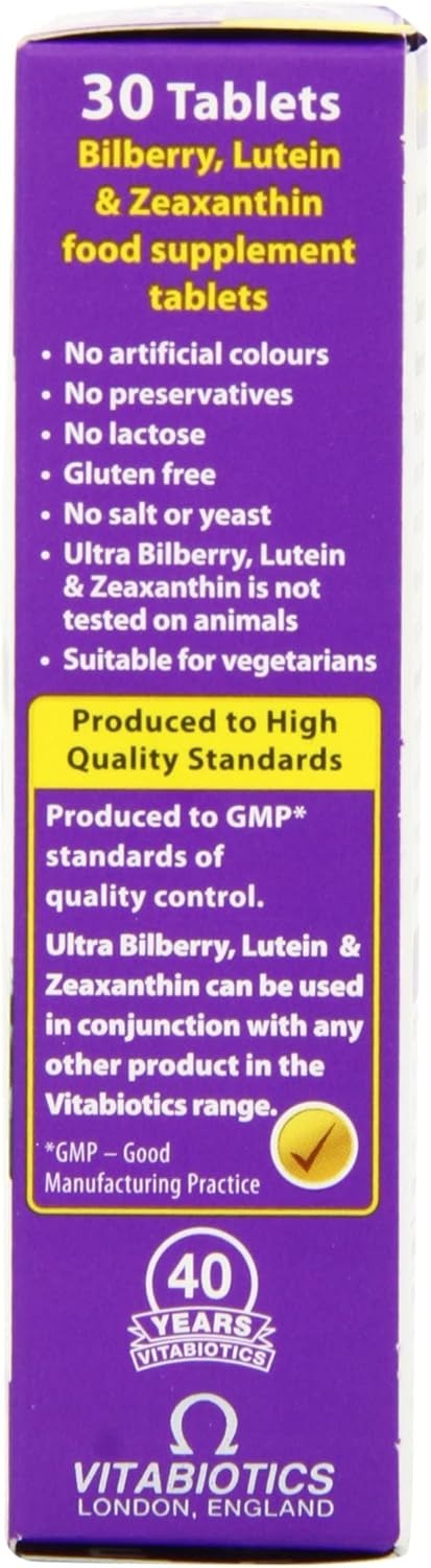 Ultra Bilberry, Lutein & Zeaxanthin - 30 Tablets by Vitabiotics: Support Eye Health with this Powerful Antioxidant Formula