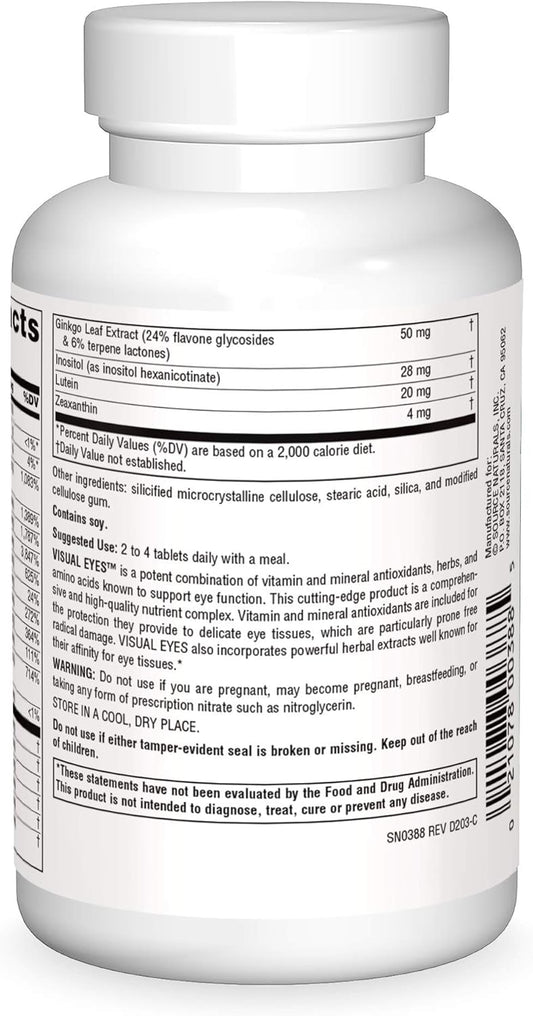 Visual Eyes Dietary Supplement - Multi-Nutrient Complex with Bilberry Extract, Lipoic Acid, and Lutein for Eye Health - 90 Tablets