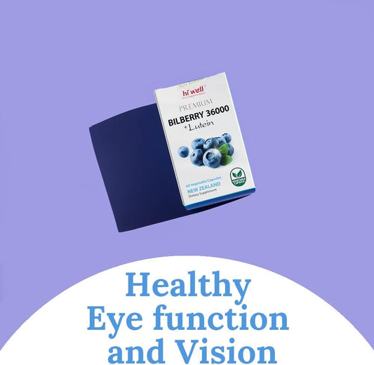 New Zealand Hi Well Premium Bilberry 36000 + Lutein 12mg 60 Vegetarian Capsules - Pure & Natural Formula