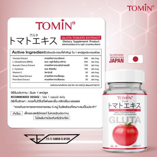 Tomin Gluta Tomato Extract Capsules for Soft and Smooth Skin - 20 Capsules/Bottle (30g) - Beautygoodshop