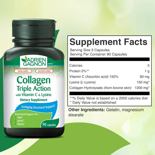 Adrien Gagnon Sante Collagen Capsules with Vitamin C and Lysine for Skin, Hair, Nails, Bones, and Joints - 90 Count