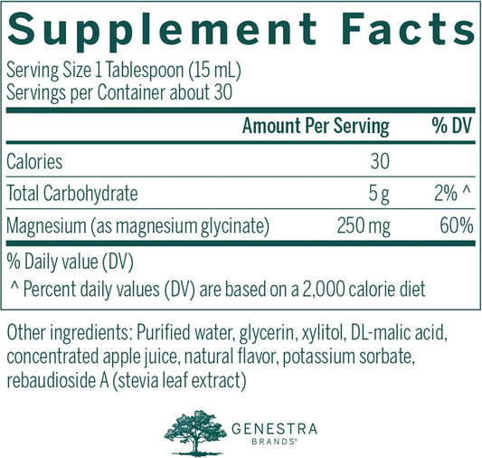 Genestra Brands Magnesium Glycinate Liquid - Apple Pomegranate Flavor - 15.2 Fl Oz - Supports Muscle Function & Metabolizes Carbs & Proteins