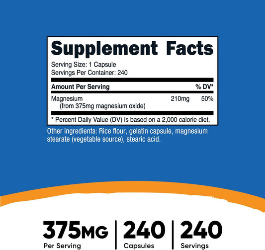 Nutricost Magnesium Oxide 375mg Capsules - 240 Count, 210mg Magnesium per Capsule, Non-GMO, Gluten Free