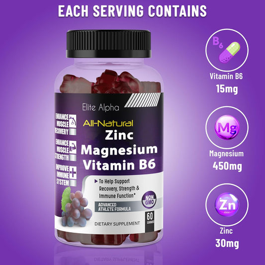 Potent All-Natural Zinc, Magnesium, B6 Gummies for Immune Support and Muscle Energy & Recovery by Elite Alpha Labs