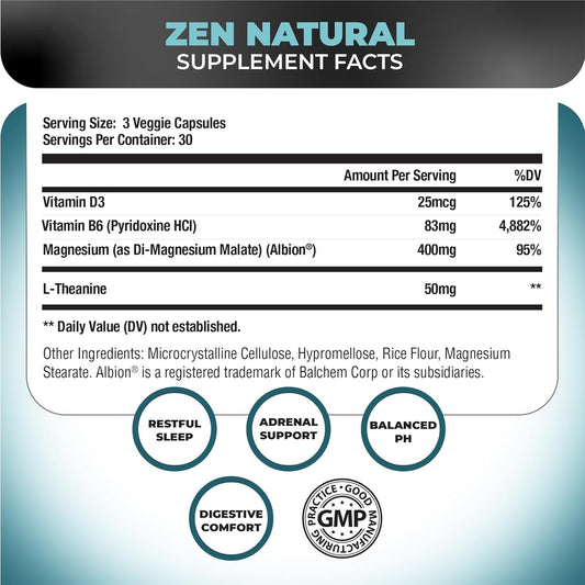 Natural Magnesium Malate Supplement with Vitamin D3 for Relaxation and Muscle Recovery, High Absorption Formula for Adrenal Health - 30 Servings