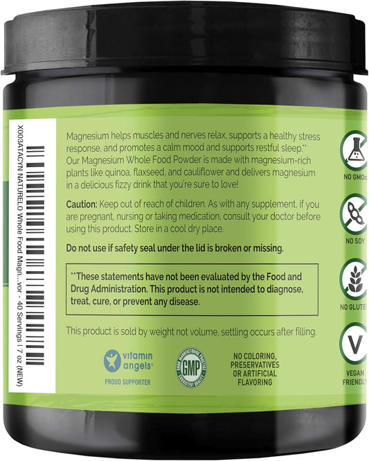NATURELO Magnesium Powder with Quinoa, Cauliflower, & Flaxseed for Stress Relief - Raspberry Lemon Flavor, 40 Servings, 7oz