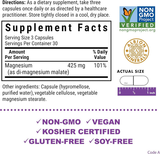 Bluebonnet Nutrition Magnesium Malate Capsules - Energy, Muscle & Joint Support - Non-GMO, Vegan, Kosher, Gluten-Free - 90 Count