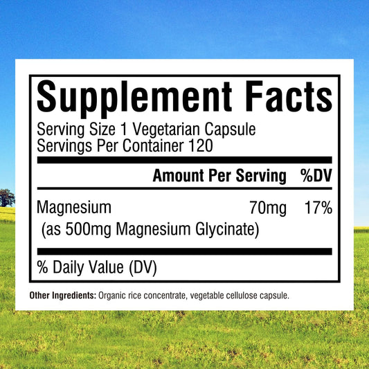 High Absorption Magnesium Glycinate Supplement 500mg | 70mg Elemental Magnesium - Nerve, Muscle, Bone, Heart Health - Non-GMO, Gluten-Free - 60 Vegan Capsules