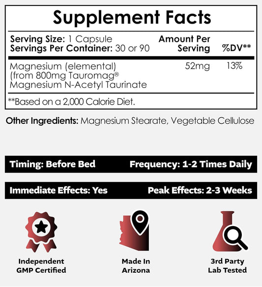 Tauromag Capsules - 800mg Magnesium N-Acetyl Taurinate - 30 Count | Nootropics Depot