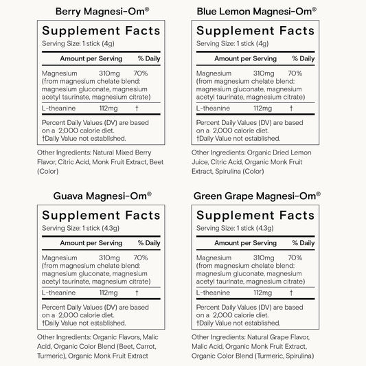 Moon Juice Magnesi-Om Variety Pack with L-Theanine for Natural Calm | Magnesium Citrate Sticks | Sugar Free | Tutti Frutti Flavors | 24 Pack