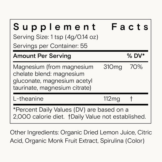 Moon Juice Magnesi-Om Blue Lemon Powder, 30 Servings, Brain Health & Rest, L-Theanine, Regularity, Glass Bottle, 3rd Party Tested, Vegan & Non GMO