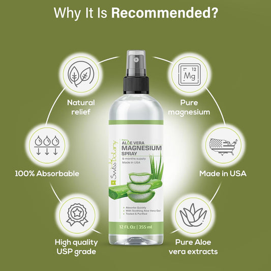 Swiss Botany Aloe Vera Magnesium Spray for Stress Relief and Sleep - 12 Fl Oz