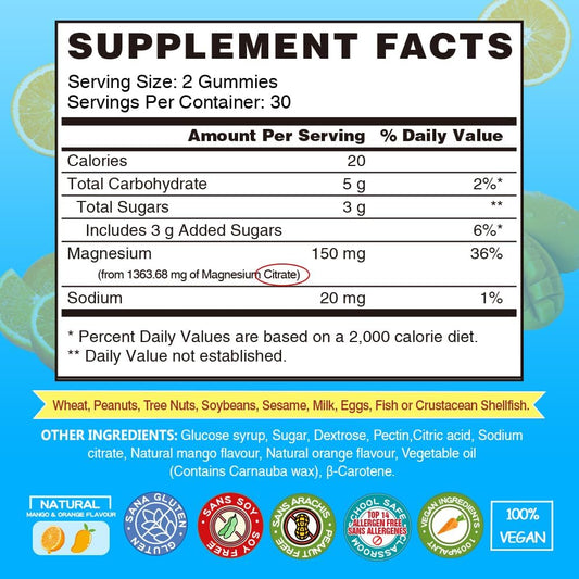 High Absorption Vegan Magnesium Gummies Chews for Adults & Kids - 1363.68mg Calm Magnesium Citrate Supplement, Supports Sleep & Relaxation - Mango Flavor, 120 Count