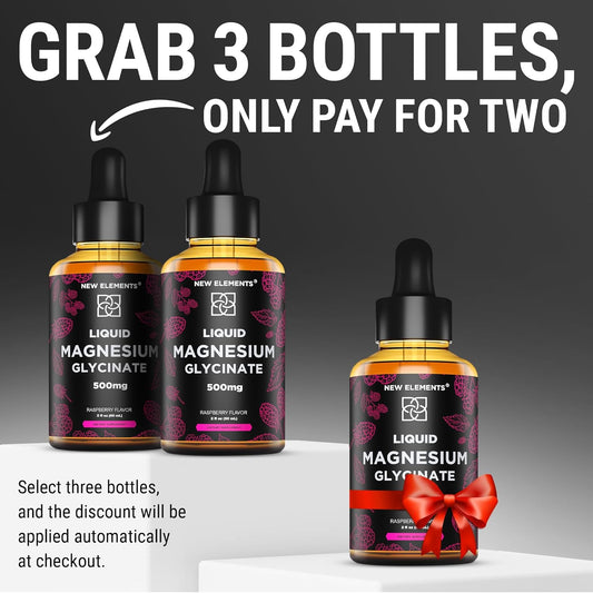 Liquid Magnesium Glycinate Drops 500mg | Raspberry Flavored Supplement for Adults & Kids | High Absorption | Non-GMO & Gluten Free | Natural Vegan Formula