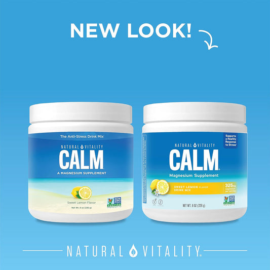 Natural Vitality Calm Magnesium Supplement Anti-Stress Drink Mix Powder Sweet Lemon 8 oz - Gluten Free Vegan Non-GMO