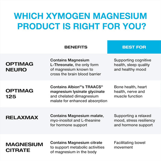 XYMOGEN OptiMag 125 - Magnesium Supplement for Nerve, Muscle, Bone, and Heart Health - 120 Capsules