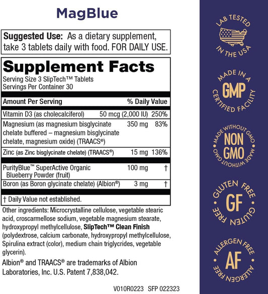 Purity Products MagBlue: Magnesium Bisglycinate Buffered Tablets - 90 Count