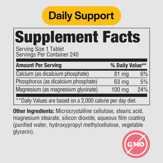 PureFormulas Magnesium Glycinate 100mg Tablets for Stress, Nerves, Sleep, Muscles & Metabolism - Non-GMO Supplement for Women & Men - 240 Count