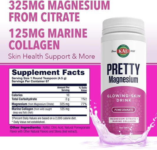 KAL Magnesium Skin Health Drink with Marine Collagen | Glowing Skin Support | Cellular Health | 325mg Magnesium Citrate | 10.7oz, 70 Servings