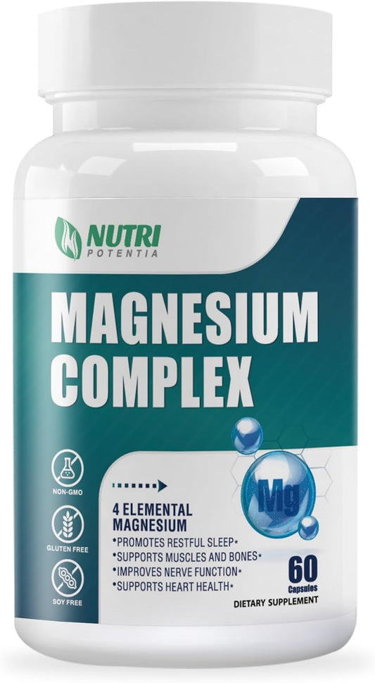 High Absorption Triple Magnesium Complex Supplement with Glycinate Malate Citrate - 90 Capsules, Vegan Formula