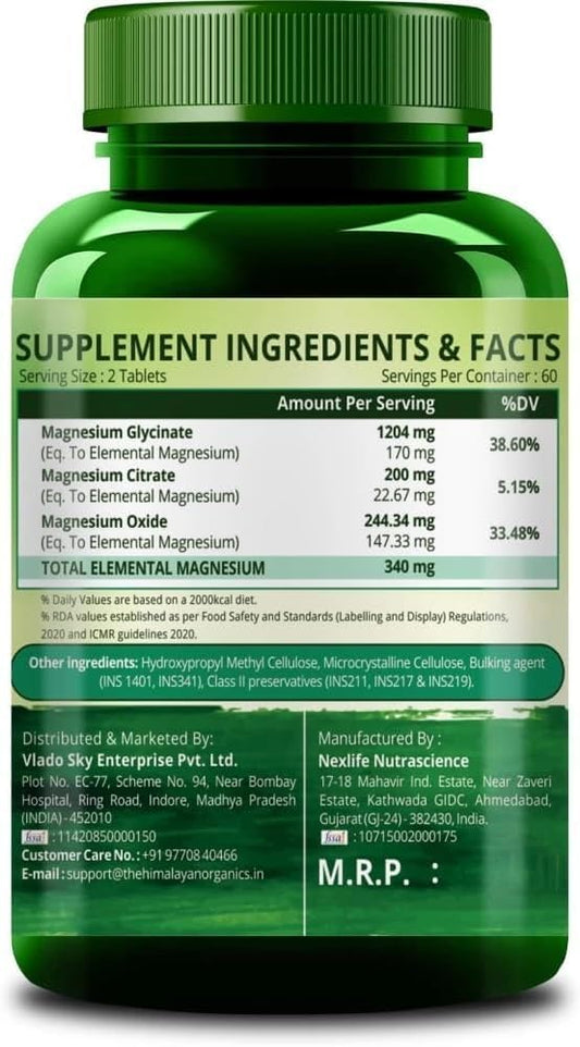Natural THO Magnesium Citrate Supplement 1648mg (120 Tablets) Vegan-Friendly Formula with Herbal Ingredients