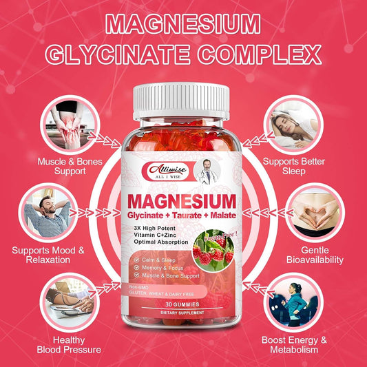 Alliwise Magnesium Potassium Gummies with Taurate & Malate - Raspberry Flavored Supplement for Adults