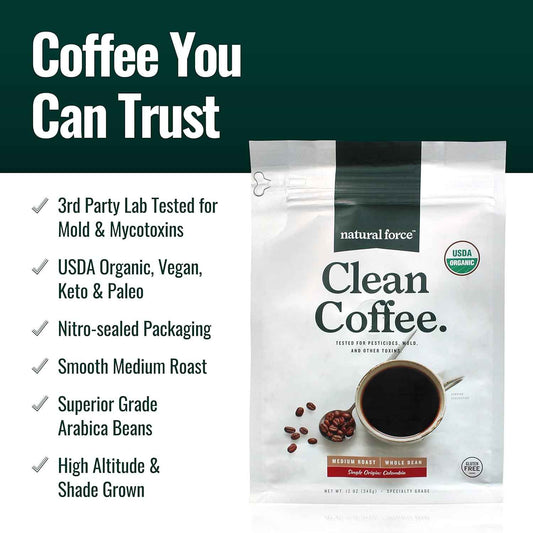 Natural Force Organic Clean Coffee + Collagen Peptides + Organic MCT Oil Bundle β Toxin Free Coffee, Grass Fed Collagen, & MCTs - Non-GMO, Keto, & Paleo - 12 Oz, 11.7 Oz, 32 Oz
