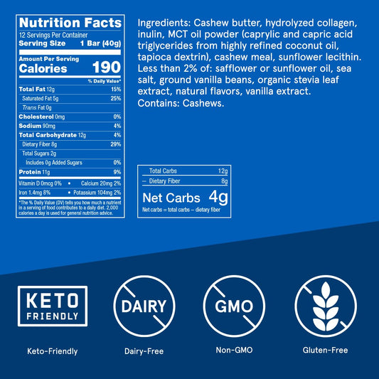 Bulletproof Collagen Protein Bars - Vanilla Shortbread Flavor - 11g Protein - 12 Pack - Grass Fed Healthy Snacks with MCT Oil - Low Sugar Option - No Added Sugar