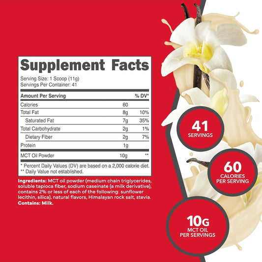 French Vanilla Ketologic MCT Oil Powder - 1 LB, 41 Servings, Medium Chain Triglycerides Supplement