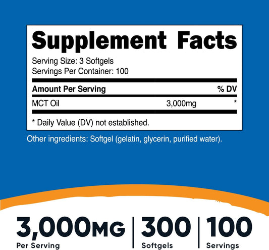 Nutricost MCT Oil Softgels 1000mg, 300 SFG - Ideal for Keto, Ketosis, and Ketogenic Diets with High Potency 3000mg Serving Size