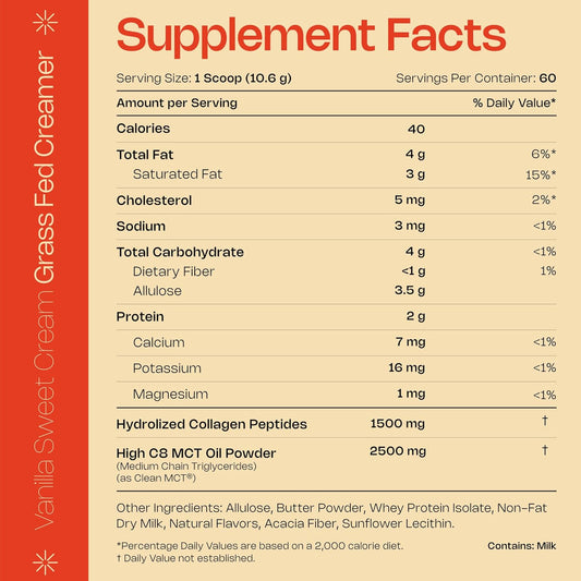 Vanilla Sweet Cream Keto Coffee Creamer with MCT Oil and Collagen Peptides for Natural Energy and Ketone Production - 22.5 oz