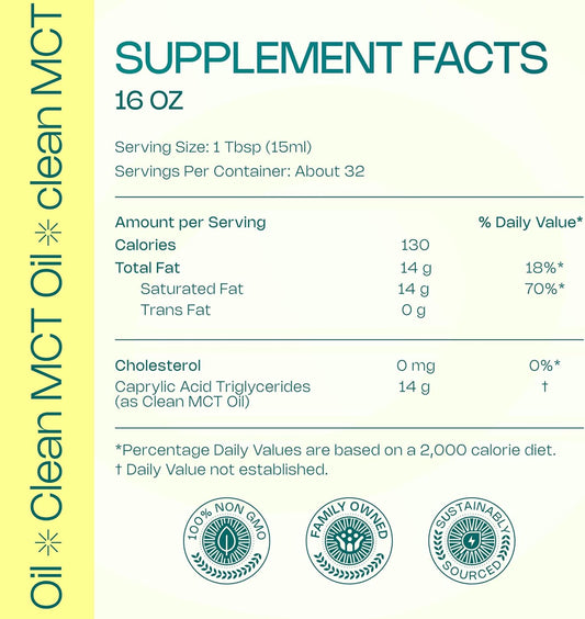 Premium Clean MCT Oil - 100% Caprylic C8 for Energy, Focus, Weight Management - Ideal for Keto Coffee - Non-GMO Keto Supplement (16 oz)