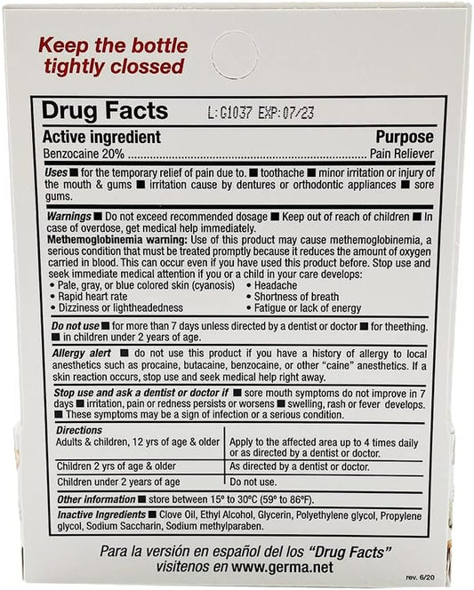 Germa La Muela Anesgerm Benzocaine 20% Mouth Analgesic - Maximum Strength - 0.5 fl.oz
