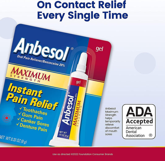 Anbesol Gel Maximum Strength 0.33 oz - Twin Pack for Fast Oral Pain Relief