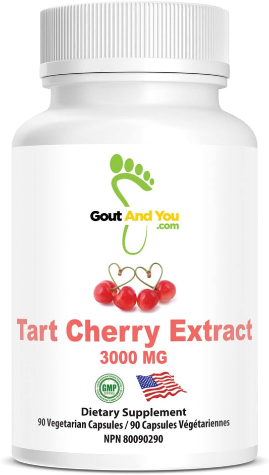 Tart Cherry Extract for Gout Relief | 3000mg Per Serving | 90 Capsules | Vegetarian & Gluten-Free