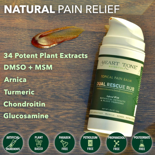 Heart Tone Botanicals Pain Balm with Arnica, MSM, Turmeric, Glucosamine - Fast Acting Joint Muscle Recovery - Extra Strength Dual Hot and Cold Relief - 45 Natural Compounds