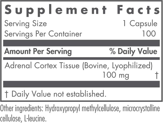 Adrenal Support Supplement for Immune & Endocrine Health - Men & Women, 100mg Adrenal Extract, Bovine, Lyophilized - 100 Count