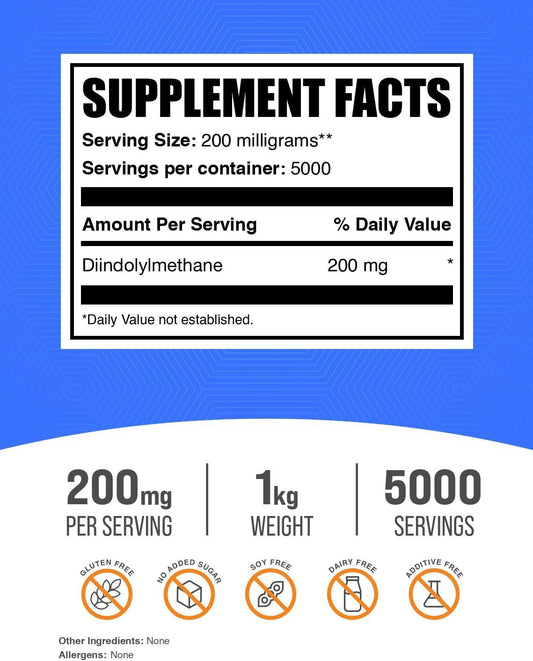 BulkSupplements.com Diindolylmethane Powder 200mg - DIM Supplement for Men & Women, Gluten Free - 1kg (2.2 lbs) Pack of 1